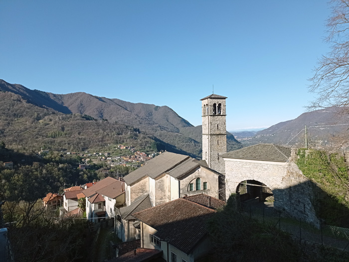 Dalla fermata dell'autobus iniziamo a salire tra le case di Palanzo, giunti nel centro del borgo una freccia a destra indica la direzione per l'antico torchio, dopo una vista a questo manufatto secolare costeggiamo la chiesa di Sant'Ambrogio e continuiamo la salita sulla via Monte Palanzone. Il sentiero è ripido ma lastricato, ci immergiamo in un bosco di faggi e castagni, al bivio svoltiamo a destra per la Bocchetta di Palanzo. Davanti a noi il sole continua ad alzarsi e tra le fronde degli alberi iniziamo a scorgere il Palanzone con la sua caratteristica vetta, superiamo un paio di torrenti e seguendo larghi tornanti arriviamo alla Bocchetta di Palanzo (1210 m).